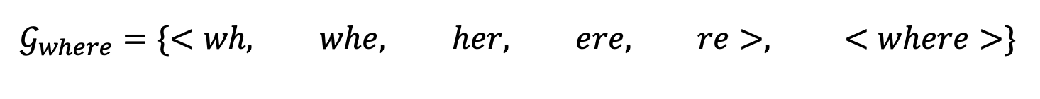 위의 그림과 같이 where 이라는 단어를 예를들면 where에 대해 각각을 나눌수 있는 모든 n-gram으로 나누게 합니다. 예를들면 n=3 이면, <wh, whe, her, ere, re>경우로 나눕니다. 모든 n-gram으로 나눌수 있는 모든 경우의 수들의 단어들의 벡터를 더한값을 where의 백터로 나타나는게 subword model 입니다. 이것을 다시 수식으로 살펴보면 다음과 같습니다.
