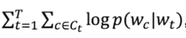 먼저 수식을 통해 간략하게 살펴보며는 $w_{1}...w_{n}$개의 단어 시퀀스가 있다고 가정했을 때, $w_{t}$라는 주변의 문맥단어인 $w_{c}$를 잘 맞추는 방식으로 학습이 진행 됩니다. 즉 $w_{c}$가 어떤 단어들이 왔을때, 확률값이 가장 높은 지를 최적화하는 방법으로 학습이 진행됩니다. 또한 $w_{c}$와 $w_{t}$는 서로다른 벡터를 지니게 됩니다. 즉 위의 2개의 벡터를 가지고 확률값을 만들어야 합니다.