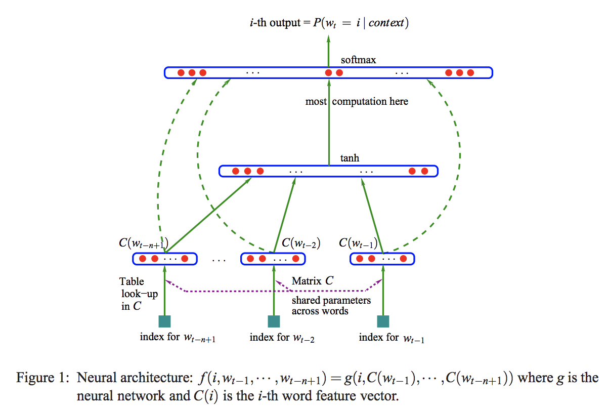 Nueral Probabilistic Language Model의 구조를 살펴보면 다음과 같습니다.