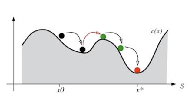 흔히 철을 담금질 할때, 온도가 높아진 철은 붉은 색으로 변하게되며, 약한 충격에도 변형이 잘됩니다. 또한 온도가 내려갈수록 철의 본 색을 띄우게되며 만들고자하는 형태에 가까워집니다. Simaulated Annelaing알고리즘은 이와 같은 방법으로 높은 온도로 부터 시작해서 점차 그온도를 떨어뜨리며 최적의 해를 찾는 방법으로 볼 수 있습니다.