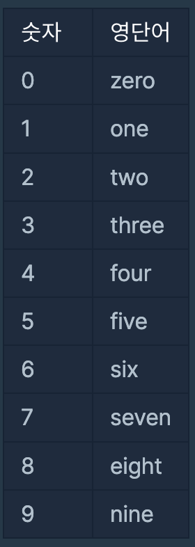 딕셔너리형태로 숫자에 대응되는 영단어 생성 이후 for문을 통해 매칭하면 됩니다.