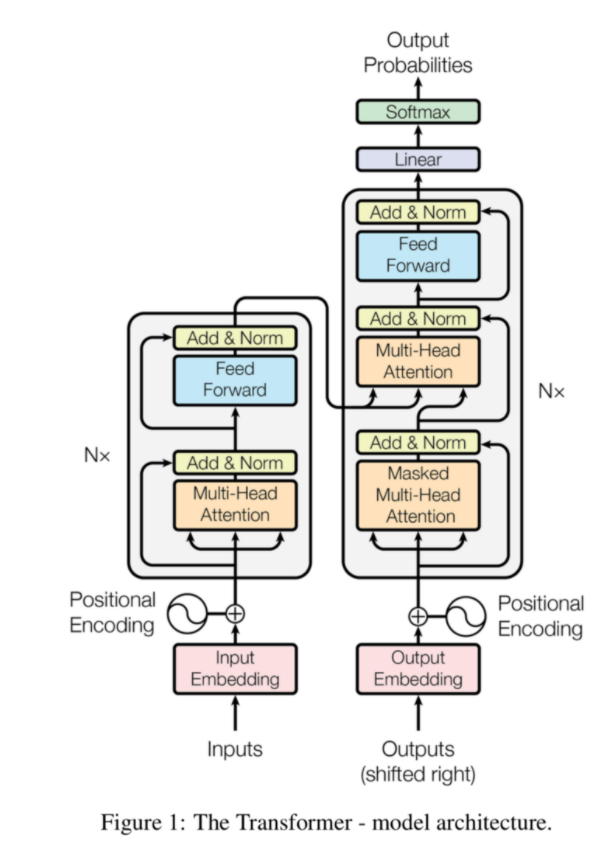 머신러닝 방식과 통계적 방식 모두 시계열 예측에서의 목표는 sum of squared error와 같은 손실함수를 최소화 하여 예측 정확도를 향상시키는 것입니다. 통계적 방법의 경우 대부분 선형처리를 진행을해서 손실함수를 최소화하며 머신러닝은 비선형 처리를 통해 손실함수를 최소화 하는 방법을 채택하고있습니다. 딥러닝의 경우 RNN종류의 LSTM(Long-Short Term Memory)이 시계열 예측 tak에서 좋은 성능을 내고있습니다. 이번 포스팅에서는 LSTM모델이 아닌 자연어 처리에서 뛰어난 성능을 보이는 Transformer를 통해 시계열 예측을 진행해 보고자 합니다. 먼저, 트랜스포머(Transformer)는 2017년 구글이 발표한 논문인 "Attention is all you need"에서 나온 모델로 기존의 seq2seq의 구조인 인코더-디코더를 따르면서도, 논문의 이름처럼 어텐션(Attention)만으로 구현한 모델입니다. 이 모델은 RNN을 사용하지 않고, 인코더-디코더 구조를 설계하였으며 자연어처리 task에서 기존의 RNN 보다 높은 성능을 보여주었습니다. 이러한 트랜스포머의 모델 구조는 아래와 같이 나타납니다.