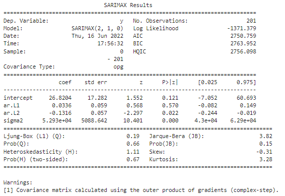 이와같이 AIC와 같은 정보기준을 통해 시계열 값을 잘 설명할 수 있는 p,d,q를 추정할 수 있습니다. Python에서는 pmdarima 내 auto_arima를 통해 자동으로 p, d, q를 수정하면서 계수를 추정하고 각 모형별로 최적의 값을 계산합니다.