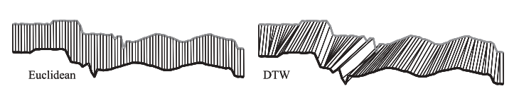 일반적으로 두 시계열 데이터의 유사도를 구할때 사용하는 척도인 euclidean distance를 사용하게되면 같은 timeline 선상에 위치한 데이터를 기반으로 계산하게되는데, 이렇게 되면 데이터의 신호의 떨림이나 움직임이 심해지게되면 유사성을 찾기 힘드며, 무엇보다 길이가 다른 시계열은 유사도를 측정할 수 없다는 단점이 존재합니다. 비록 euclidean distance를 통해 시계열의 길이를 자르거나 늘려서 두 시계열간의 유사도를 구할수는 있지만 이점 역시 한계점이 존재합니다.