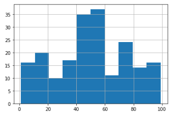 데이터셋을 보면 총 200명의 고객 각각에 대해 1에서 100까지의 지출 점수를 수집한 것을 볼 수 있습니다. 지출 점수의 값은 1에서 100까지의 척도에서 한 사람이 쇼핑몰에서 돈을 지출하는 빈도를 의미합니다. 즉, 고객의 점수가 0이면 이 사람은 절대 지출하지 않으며 점수가 100이면 가장 많이 지출한 사람입니다.