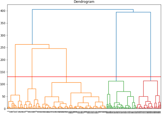 이제 Annual Income과 spending score에 대해 hierachy clustering을 진행해 보도록 하겠습니다. 클러스터링의 시각화는 덴토그램을 통해 진행하였으며 method는 ward, 그리고 metric은 유클리드 거리를 통해 클러스터링을 진행하였습니다.