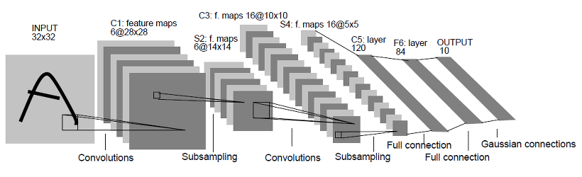 LeNet은 CNN의 기반을 구성했으며 input layer, convolution layer, subsampling layer, fully connected layer, output layer로 구성되는 것을 확인 할 수 있습니다. LeNet은 LeNet1을 시작으로 input의 크기 및 convolution kernal의 크기 LeNet5까지 발표되었으며, CNN 이전의 fully connected neural network의 topology 나 noise에 대한 이슈에 잘 대응하는것으로 확인되었습니다.